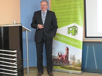 Томас Руланд подробно остановился на функционировании берлинских советов совместного домовладения. В управлении домом задействованы три игрока: объединение собственников многоквартирного дома, избираемый ими совет жильцов, состоящий из трех человек, и управляющая компания. В отличие от белорусских условий, где управляющая общим имуществом организация представляет из себя отдельную форму управления наряду с ТС, управляющая и сервисная компания в Германии – это организация, которая выполняет управление финансами, ремонтами, эксплуатацией, страхованием, клинингом и отходами, организацией и проведением общих собраний собственников квартир, предлагает собственникам квартир различные дополнительные услуги, организует модернизацию дома и капремонт. Совместное домовладение (все собственники квартир) само выбирает для себя управляющую компанию среди тех, которые в изобилии представлены на немецком рынке. Для сравнения, в Беларуси пока не разработаны даже условия деятельности управляющих компаний, т.е. настоящих УК просто нет.