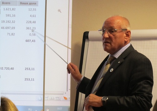 Вернер Меркель познакомил присутствующих с профессиональной информацией, содержащей детальное изложение видов страховок в Германии и обязанность управляющиего в связи со страхованием МЖД.
