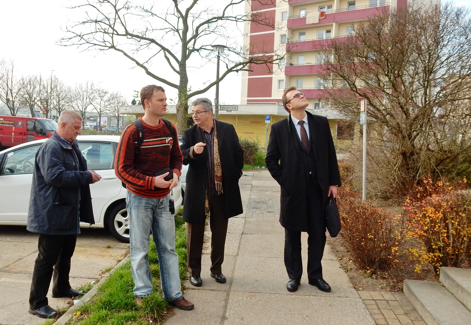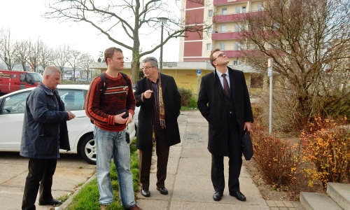 Далее состоялось посещение берлинского совместного домовладения – панельного многоэтажного жилого дома, расположенного рядом с Бранденбургскими воротами. Томас Руланд, адвокат, а также председатель совета собственников этого многоэтажного дома, являющегося совместным домовладением, рассказал историю дома. После объединения Германии, законодательная власть не пошла по пути массовой бесплатной приватизации жилья, а предложила всем желающим стать собственниками – купить по рыночной стоимости квартиры в многоэтажках. В этой многоэтажке, в частности, решение стать собственниками было принято в основном из-за расположения дома в самом центре города. И собственники не прогадали – рыночная стоимость квартир за несколько десятилетий выросла в несколько раз.