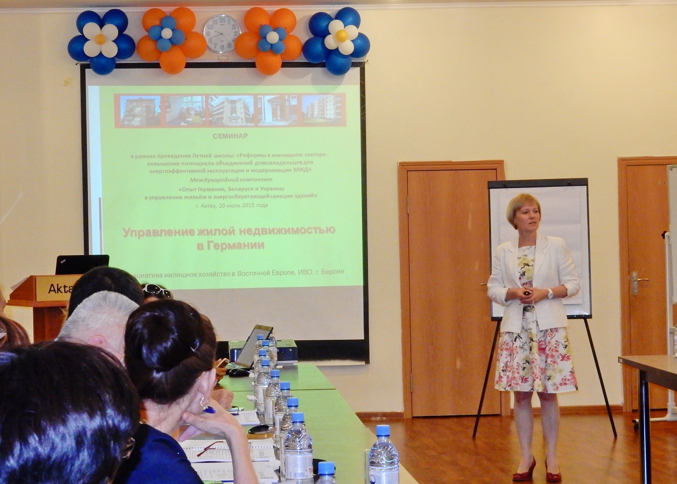 20 - 24 июля 2015 июля 2015 в городах Актау и Кызылорда, в рамках программы ПРООН Казахстана «Летняя школа: «Реформы в жилищном секторе - повышение потенциала объединений домовладельцев для энергоэффективной эксплуатации и модернизации МЖД», международный компонент», прошли семинары, а также круглые столы с местными органами власти.