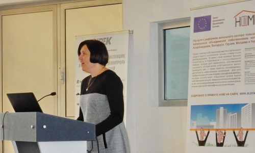 С точки зрения практика-управляющего построила свою презентацию Алина Жесткова, директор областного ресурсного Центра эффективного управления жильём, Харьков. Она привела пример сотрудничества с местным органом самоуправления. Так, например, программа курса «Организация и управление деятельностью объединения совладельцев многоквартирного дома» работает в Харькове с 2009 года и более 1000 человек смогли изучить эту программу, а реализация программы полностью финансируется за счёт бюджета г. Харьков. Выход есть всегда - главный мотив выступления Алины поддержали участники конференции.