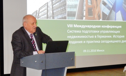 В Минске 09 ноября 2016 состоялась 8-ая Международная конференция МАМН "«Инициативы по созданию системы подготовки и переподготовки управляющих жилой недвижимостью и системы информирования собственников жилья». Конференция была подготовлена в рамках проекта "На пути к реформам жилищного сектора: повышение потенциала объединений собственников жилья в Азербайджане, Беларуси, Грузии, Молдове и Украине". Конференция прошла в Международном образовательном центре имени Й.Рау по адресу проспект газеты "Правда", 11. Организаторы семинара – Международная ассоциация менеджмента недвижимости, МОО "Экопроект", Белорусский государственный технологический университет, Инициатива «Жилищное хозяйство в Восточной Европе» (ИВО), г. Берлин (Германия). Рекомендации конференции Международная ассоциация менеджмента недвижимости (МАМН) и ее партнеры за прошлые годы предприняли ряд инициатив, направленных на поддержку актеров в сфере управления недвижимостью. Были проведены семинары, разработана настольная книга по информированию собственников жилья, а также предложения по учебным программам для обучения управляющих. Это было сделано в сотрудничестве с собственниками жилья, товариществами собственников, гражданскими инициативами, частными сервис-компаниями, государственными предприятиями жилищно-коммунального хозяйства и образовательными учреждениями. МАМН видит себя в роли своеобразного моста, связывающего управляющих жильём и государственные органы. Проанализировав полученный опыт, МАМН предлагает объединить отдельные элементы повышения профессионализма в сфере управления жильем и создать целостную систему для подготовки управляющих недвижимостью и информирования собственников жилья. VIII Международная конференция МАМН является отправной точкой на этом пути. Для достижения этих целей большое значение имеет международный обмен опытом среди управляющих и их организаций. Об этом говорил в своём вступительном слове председатель правления МАМН Вернер Меркель, который и открыл конференцию. Посол ФРГ в Республике Беларусь Петер Деттмар подтвердил актуальность работы МАМН и её партнёров в указанном направлении - создании профессионального управления жилой недвижимостью, и пообещал поддержку таким начинаниям. Заместитель Министра жилищно-коммунального хозяйства Республики Беларусь Геннадий Трубило также подчеркнул в своём приветственном слове важность обсуждаемой темы и пожелал всем участникам плодотворной работы. Йоханн Штрезе, координатор проекта HOME, познакомил присутствующих с основными целями проекта. К слову, помимо партнёров проекта и представителей ресурсных центров, на конференции присутствовали руководители органов госуправления, государственных организаций ЖКХ, бизнес-копаний, учреждений образования и институтов повышения квалификации, социалогических институтов, союза и ассоциаций объединений собственников жилья, отдельных ТС из 9 городов Беларуси, эксперты из Латвии, Литвы, России, Словакии, а также журналисты. Тем не менее, во время выступлений разных спикеров и в процессе дискуссии обнаружилось разное понимание присутствующими профессионального управления как такового. В частности, делясь немецким опытом в данной сфере, председатель правления МАМН, директор управляющей компании «ВЕГИС» (г. Бе