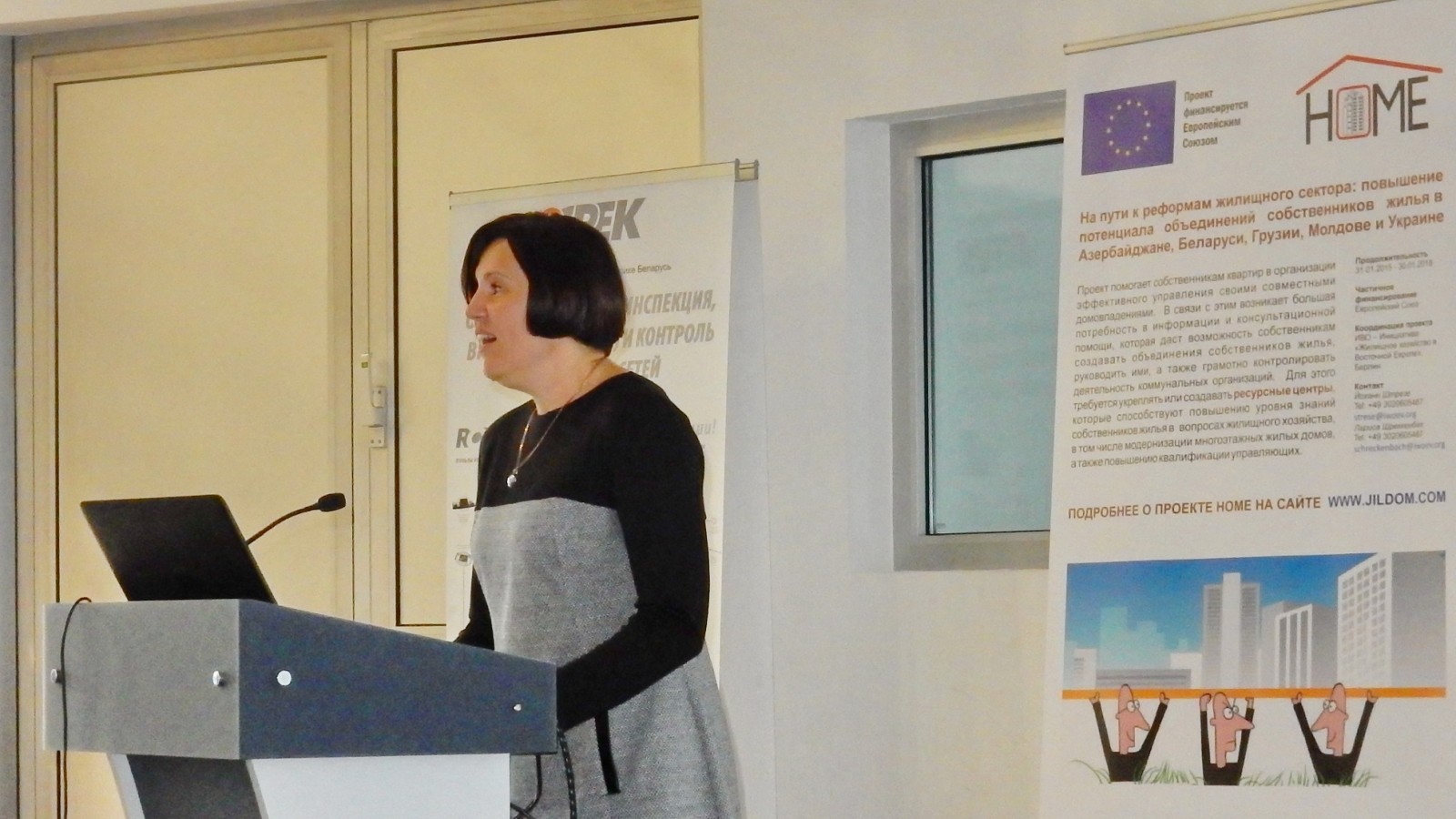 Второй блок конференции открыла Юлия Пушко, специалист по коммуникациям Проекта IFC (Группа Всемирного Банка) из Киева. Юлия рассказала об огромной проделанной работе по информированию собственников жилья в Украине и обучению их энергоэффективной санации МЖД. Для этого использовались самые разные коммуникации - сериалы на телевидении, выпуск различных печатных материалов, съёмки учебных фильмов, видео-ролики с руководителями учебных практик и многие другие. Все эти элементы коммуникаций без сомнения можно рекомендовать Ресурсным Центрам в странах проекта HOME.