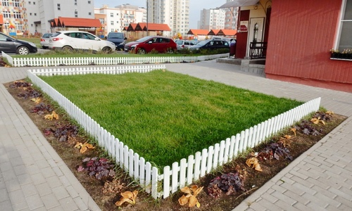 Каждый год появляются новые архитектурные формы - беседки, скамейки, детское игровое оборудование. Высадка зелёных насаждений без согласования с председателем ТС запрещена. На газонах в жаркое время организован автоматический полив. Стрижка кустов и покос газонов производится собственными силами регулярно. Уборка территории производится постоянно, в том числе в выходные дни, дежурным рабочим по комплексной уборке.