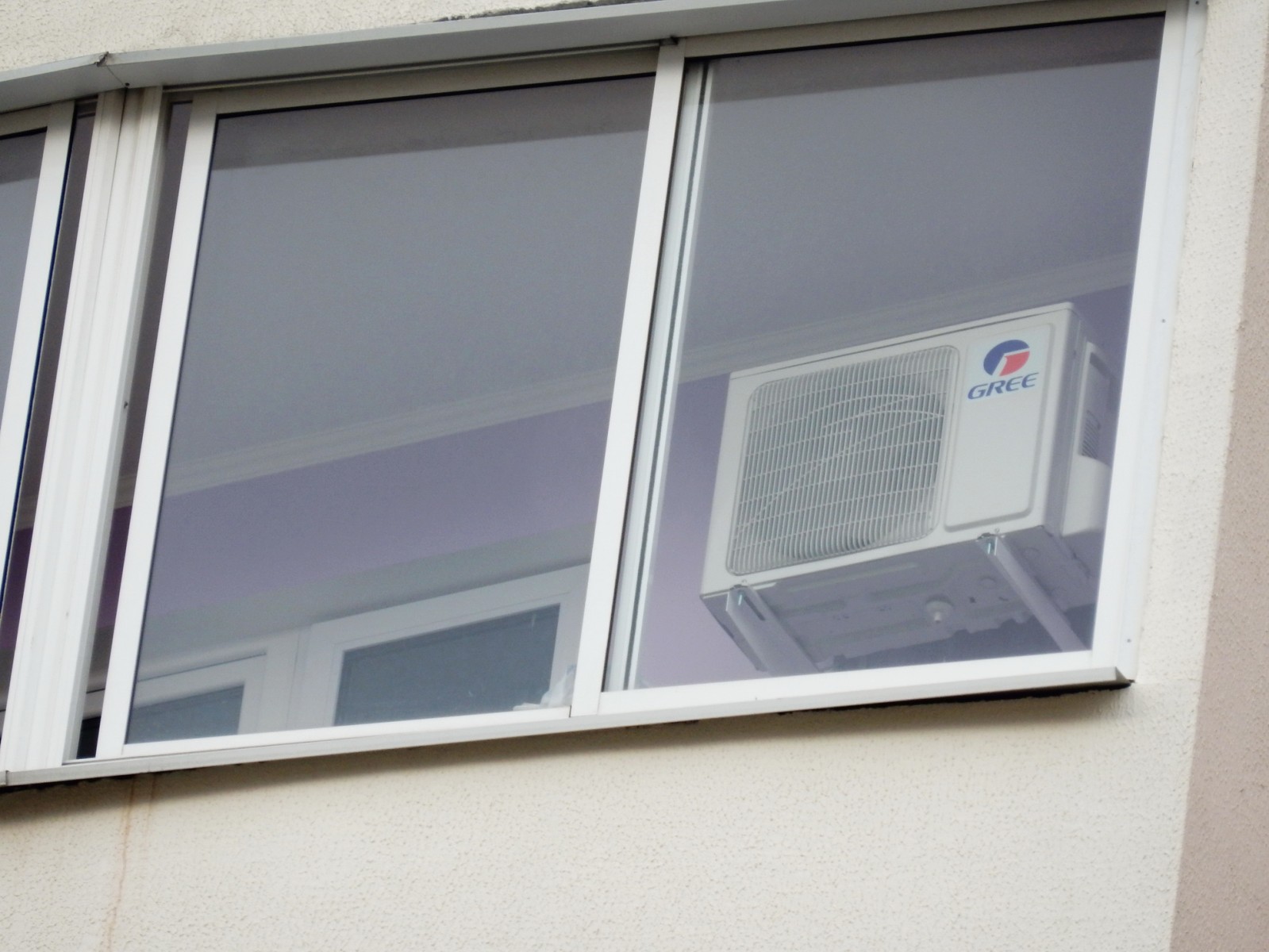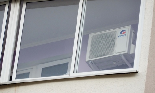 Установка кондиционеров и спутниковых тарелок на фасадах домов запрещена, разработаны две схемы установки кондиционеров - для юрлиц на отмостке за специальной решёткой, для собственников квартир - на лоджиях, по специальной технологии. На фасадах тарелок и кондиционеров нет!