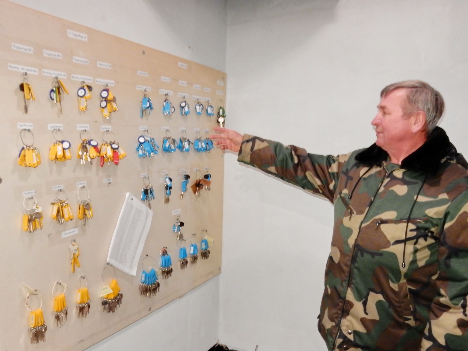 Заключён договор с аварийной службой Московского района, которая приезжает в течении 15-20 минут. У работников аватийной службы есть один ключ от помещения, в котором находятся подписанные ключи от всех вспомогательных помещений группы домов.