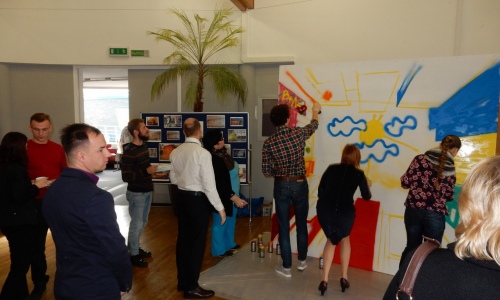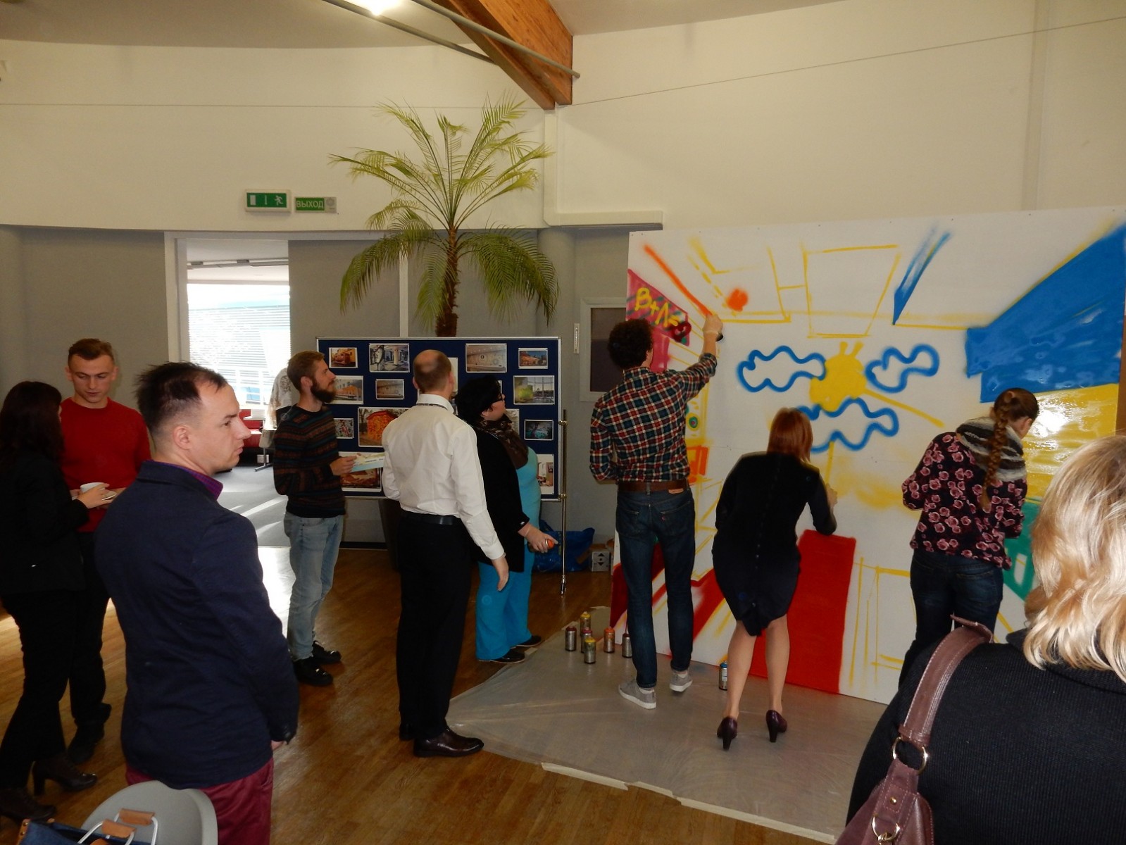 ZADELO на Международная ассоциация менеджмента недвижимости from Zadelo on Vimeo. Делегаты конференции поздравили участников объединённой команды по брейк-дансу «KIENJUICE» из Беларуси, России и Украины, занявшей второе место на чемпионате мира «Battle of the Year 2015», завершившемся в Фольцваген-холле немецкого города Брауншвеге 24 октября 2015 года. Представители этой команды также являлись членами арт-студии «ЗАДЕЛО», которая организовала для участников конференции мастер-класс по стрит-арту в 30-минутном перерыве на кофе-брейк. Совместными усилиями участников конференции была создана работа с стиле стрит-арт на огромном панно из листов структурированной древесины, вокруг которой и была сделана групповая фотография участников конференции.