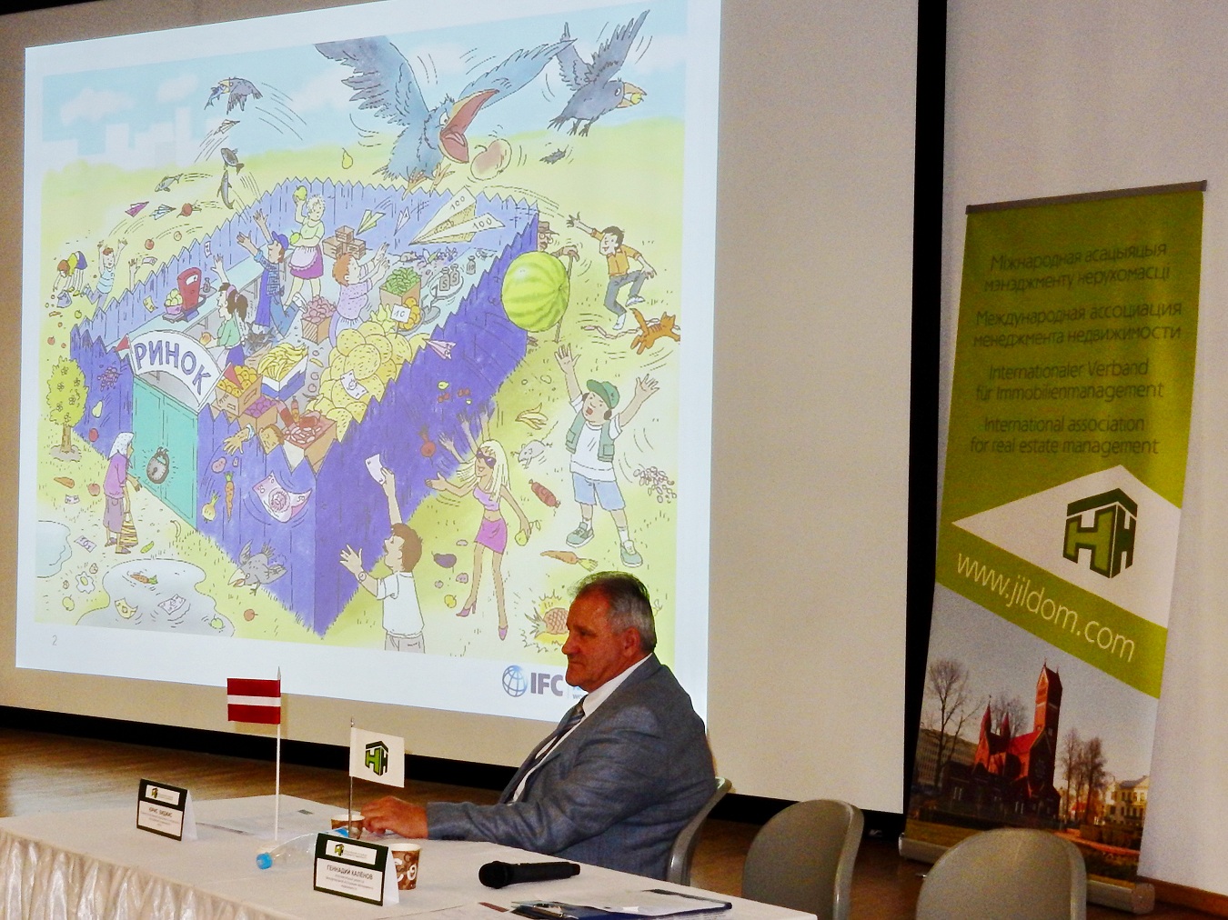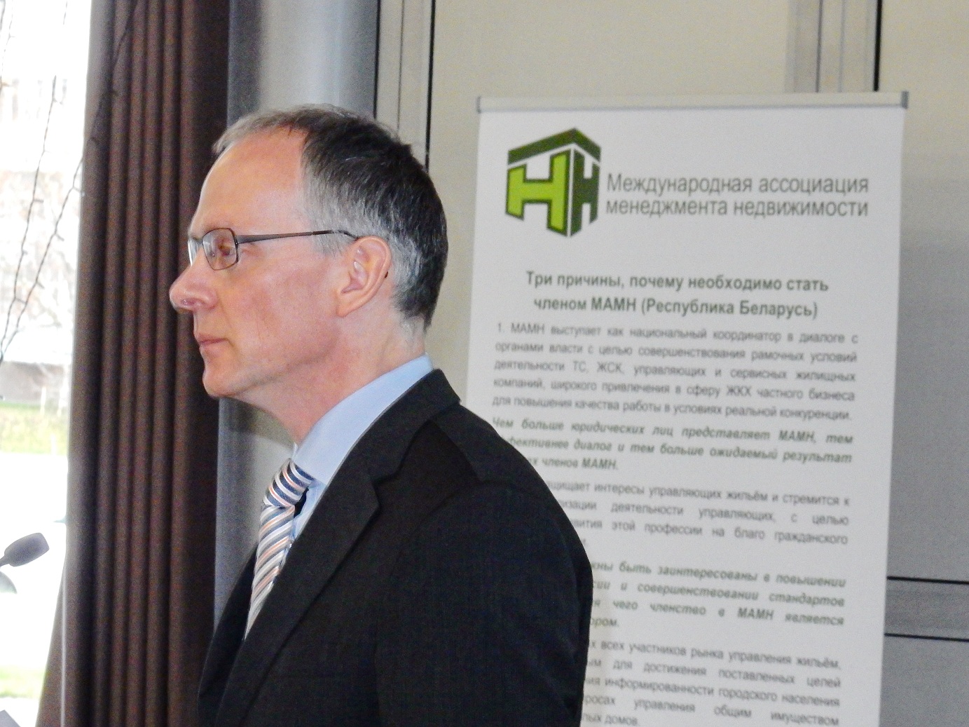 Геннадий Каленов, исполнительный директор Международной ассоциации менеджмента недвижимости, рассказал о проблемах в управлении жилым фондом в странах постсоветского пространства. Он отметил, что самоуправление не сможет решить всех проблем, ведь когда у жильцов есть свобода делать в своем жилом доме все, что они хотят, чаще всего они не хотят делать ничего. Или же, наоборот, возникает абсурдная ситуация с пристройкой дополнительных жилых помещений и т.д. Также он отметил, что несостоятельна и следующая позиция: бизнес (конкуренция) все решит. Безусловно, развитая конкуренция дает стимул к развитию, но без рамочных условий такая система не сможет функционировать полноценно. По мнению Геннадия Каленова, эффективна саморегулируемая система управления жильем с минимальными государственными ассигнованиями, где государство создаёт правила (законы и предписания), а профессиональные управляющие и мотивированные, информированные собственники жилья являются активными участниками процессов управления, содержания и модернизации жилого фонда. Такую систему, по мнению эксперта, удастся создать в Беларуси в течение последующих 15 лет.