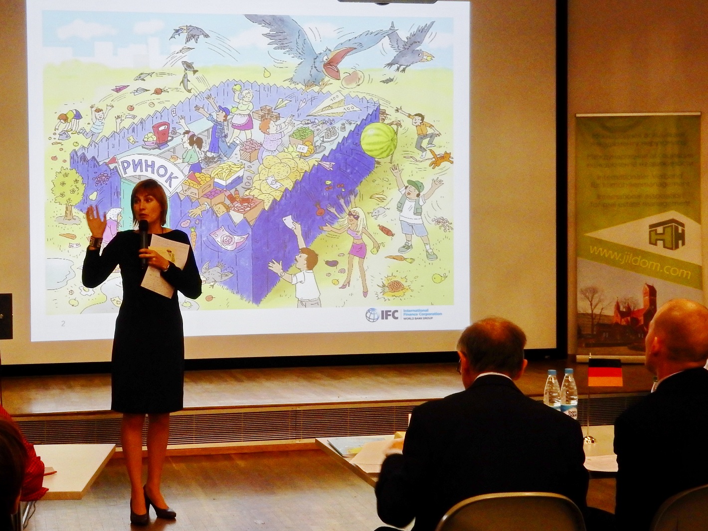 Приветственное слово Татьяны Хартенштайн, финансового директора «Инициативы «Жилищное хозяйство в Восточной Европе» IWO Berlin, включило в себя в том числе конкретное предложение – максимально использовать опыт Германии, в частности «Декларацию о разделении общего имущества в совместном домовладении», которая включает в себя также правила для будущих собственников квартир, с которыми покупатель знакомится до принятия решения о покупке квартиры в этом совместном домовладении.